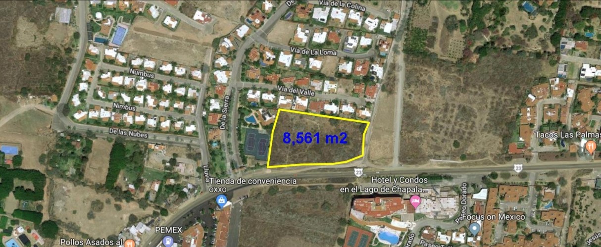 Extraordinaria Propiedad con un potencial comercial inmenso: con 137 metros de frente al Libramiento Chapala-Ajijic, junto al nuevo hospital y Fraccionamiento Vista Alegre y frente a la Plaza Interlago y la gasolinera, esta propiedad es ideal para un desarrollo comercial